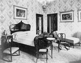April 28, 2018 William M. Bunn Taking On The Bellevue-Stratford Hotel 267 × 208 267px-Wrau-bellevue-stratford-interior A bedroom in the Bellevue-Stratford, photographed by William H. Rau, circa 1905