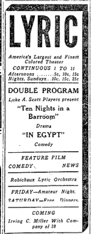 We remember the Lyric Theater as a landmark in the early years of African American Jazz, but the theater had another side. The Times-Picayune one hundred years ago advertised a moralizing play based on the second most popular American novel of the 19th Century.