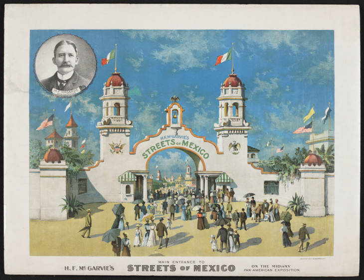 To understand the Streets of Mexico restaurant, we need to know a little bit about the Pan-American Exposition of 1901 in Buffalo New York. That way we can begin to understand how two caucasian men (plus one for the architecture) were able to run, design, and create an authentic Mexican restaurant. Not only is the 1901 exposition known as the place where President McKinely was assassinated, but it was also designed to help strengthen the relationship between the US and Canada, Central and South America, in particular to create better commercial relations with these countries after the Spanish-American War of 1898 made Cuba and Puerto Rico into new gateways to Latin American markets. In Mexico’s eyes, the exposition was a great success and helped relations between the US by enabling. Mexico to showcase their advancements and progress within their country (as was also the goal of the exposition). But Mexico wasn’t as concerned with sharing their culinary abilities/skills, despite the presence of a restaurant to accompany Mexico’s fair, and it was inspired by the actual streets of Mexico.