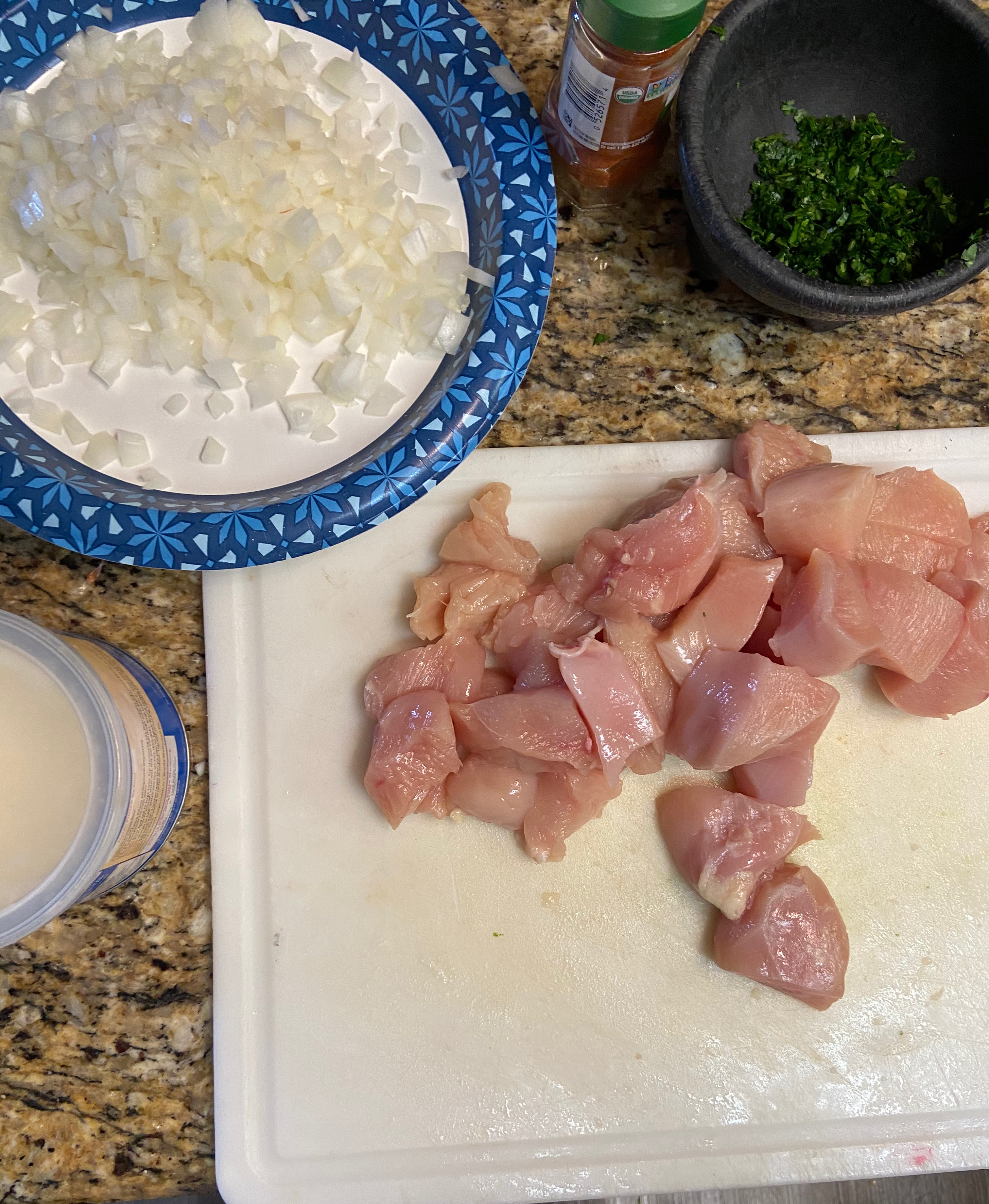 Now it’s time to start on the chicken paprika. The only diversion from the recipe that I’m taking is using vegetable lard instead of the assumed animal lard that the recipe calls for. I’m also using two chicken breasts instead of a whole chicken to attempt to make a smaller batch.