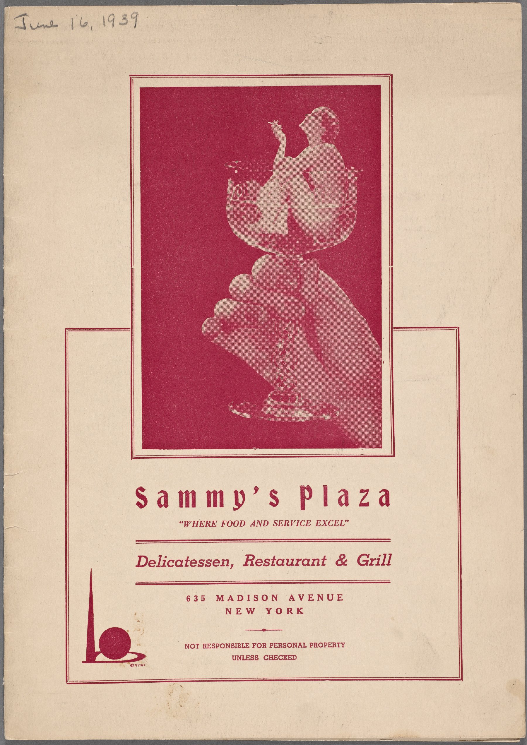 - Sammy’s Plaza. New York. Menu. 16 June 1939.