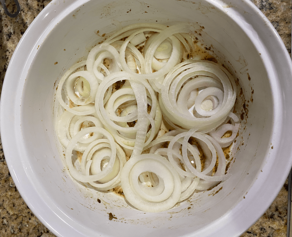 In my attempt to cook Baked Irish Stew, I went through the recipe and followed what steps were provided. The recipe from “Queen ” Cookery Book gave me the knowledge of what pan to use, the ingredients, and what quantity of the ingredients to use. It said to use three or four onions and potatoes for one pound of steak. The recipe also mentions the use of stock and the use of a couple of drops of Worcester as an alternative to the “essence of anchovy.” The recipe said to layer the ingredients, first a layer of onions, then steak, and finally, the potatoes, repeating as necessary and salting and peppering each layer.20