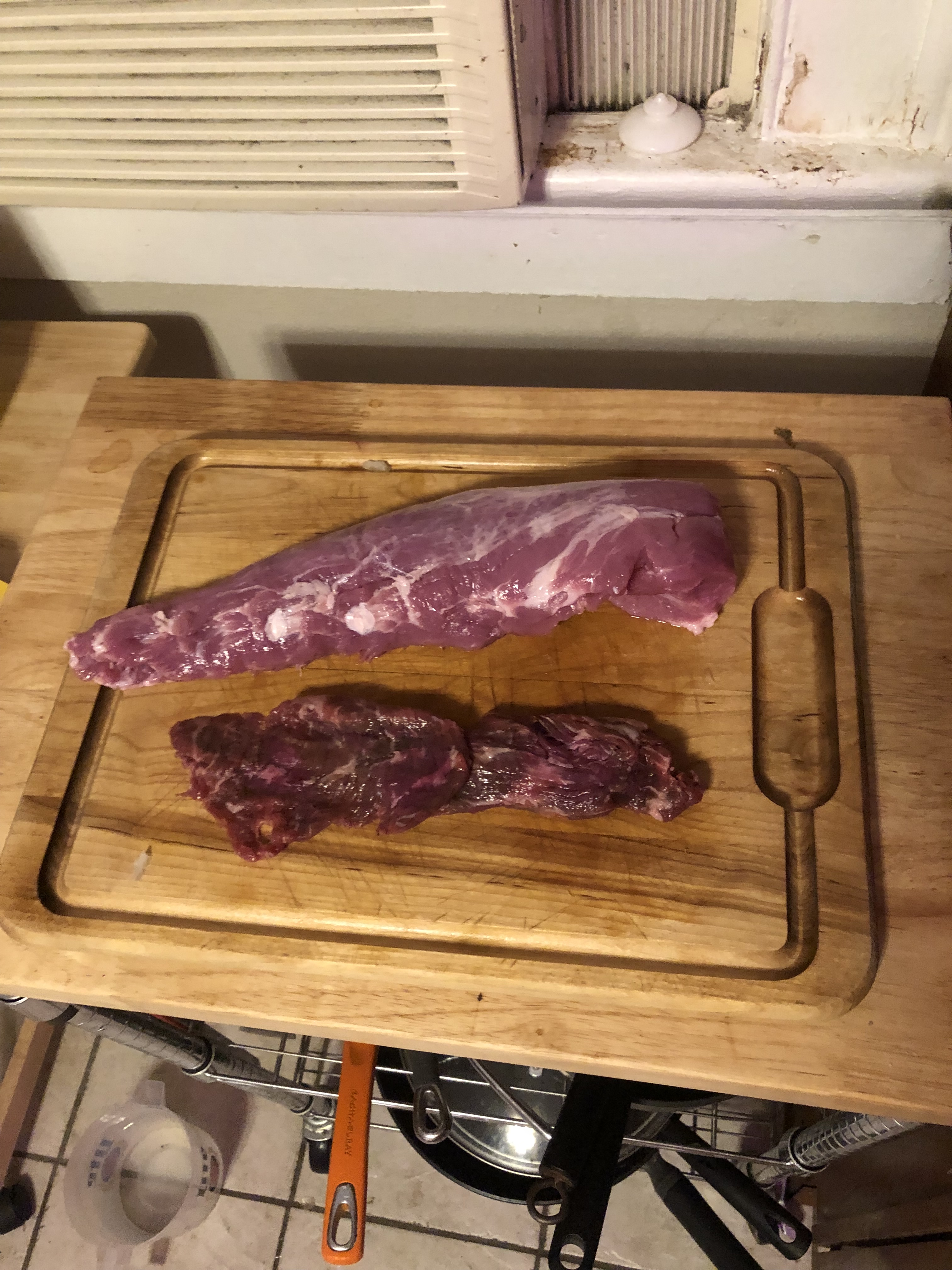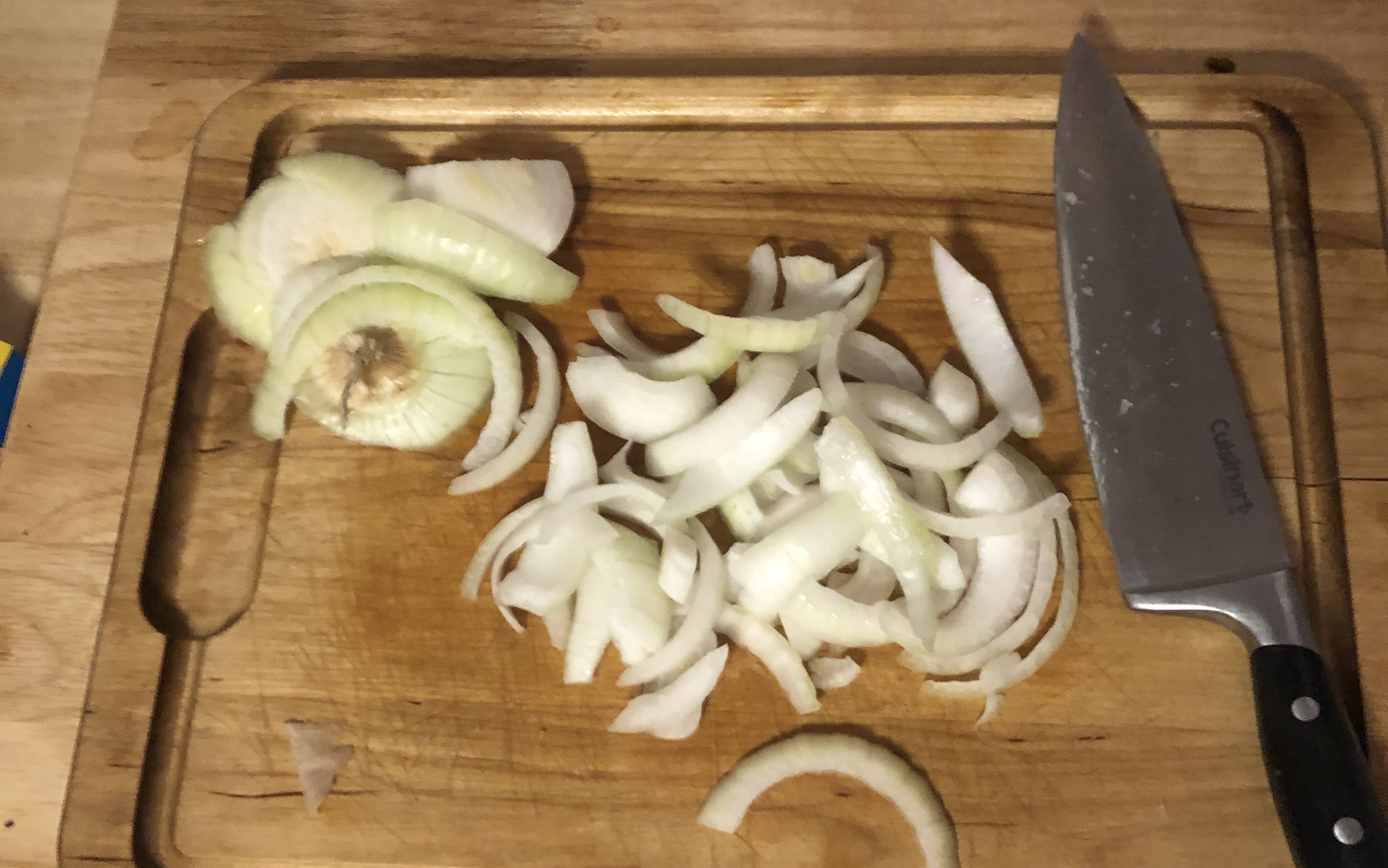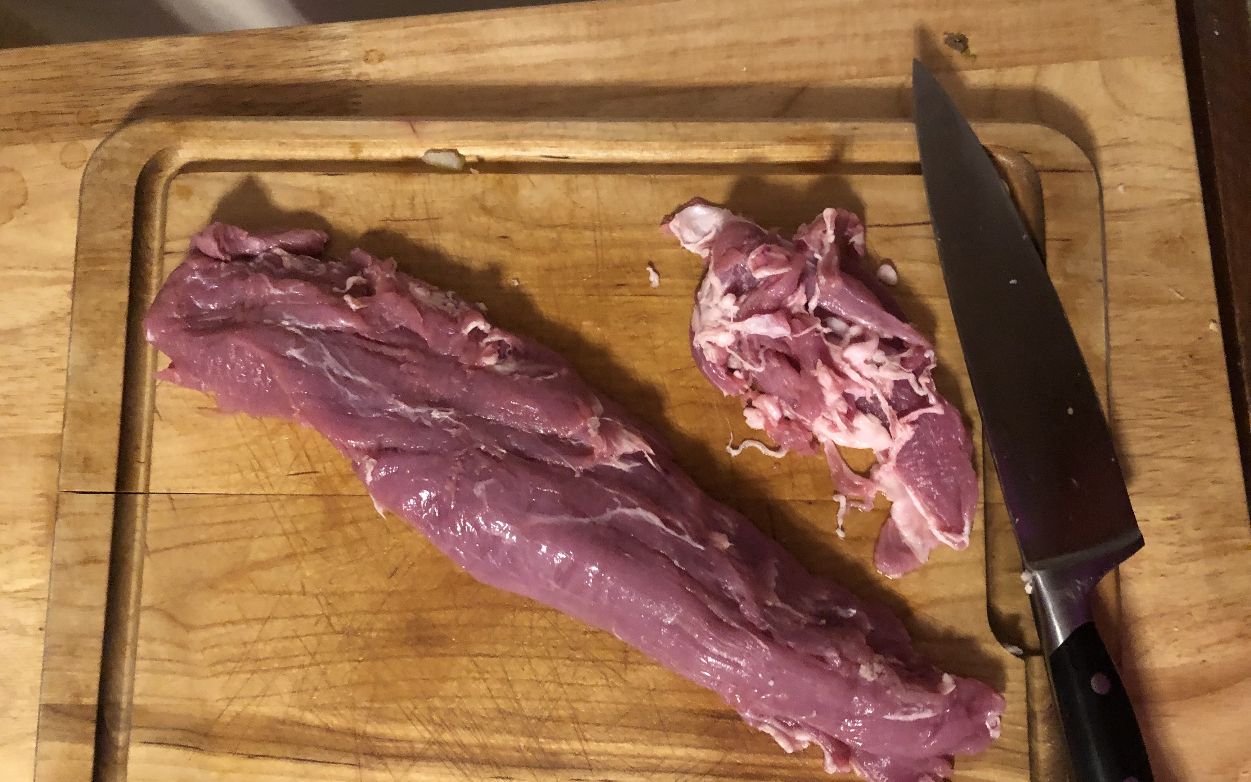 As a born and raised Puertorican “Carne Frita” is probably one of my favorite dishes, I can eat pounds of it in one sitting. To prepare this dish you must clean 2 pounds of pork loin by removing fibers and skin as a preparation and cut one yellow onion.