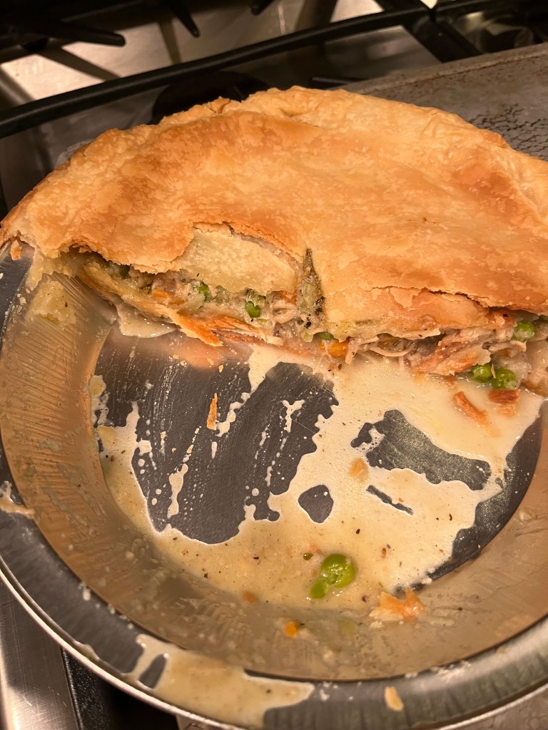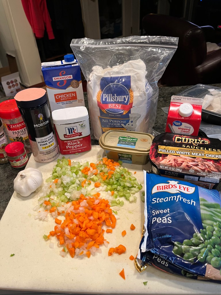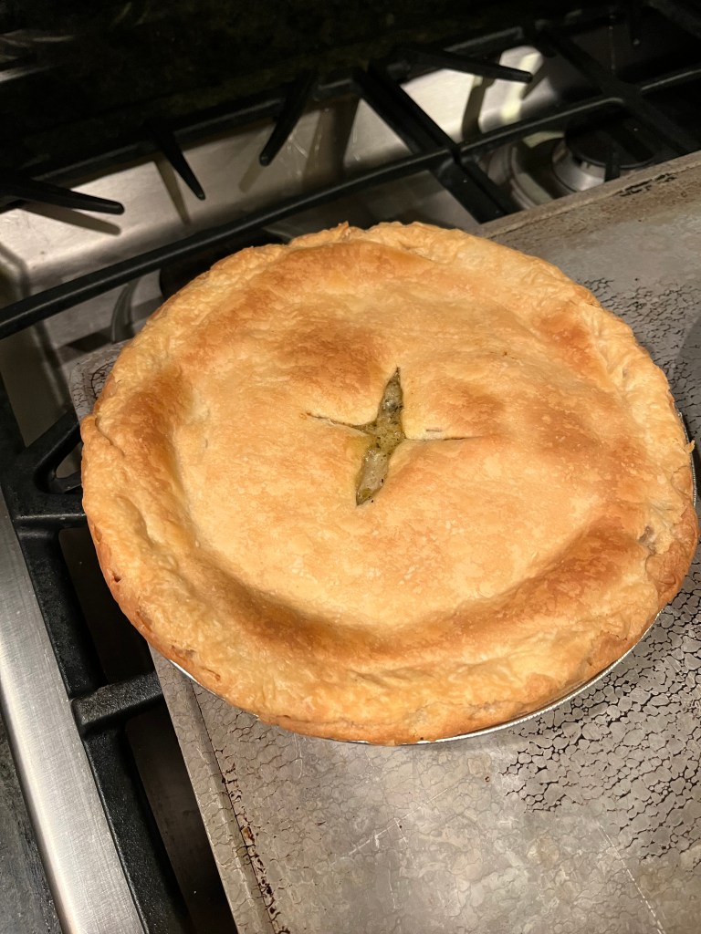 The process was actually extremely simple, despite my friends and family constantly telling me how difficult it would be to make Chicken Pot Pie. The recipe was super easy to follow, and the ingredients– which I’m sure were much more difficult to find in the 1930’s– were just a grocery store trip away. The entire process took about an hour and a half, with forty-five of those minutes devoted to the pie cooking in the oven.