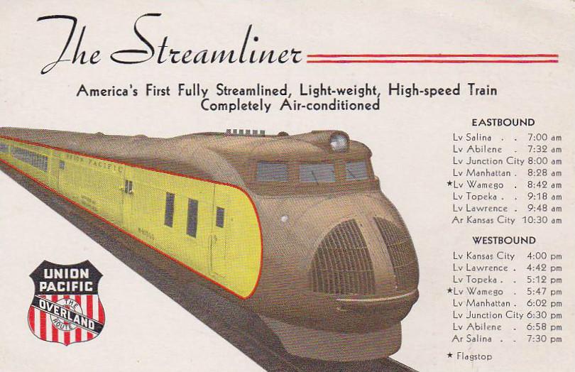 During the 1940s, the Union Pacific was still in the phase of planning out new routes and further improving their travel times from place to place. During this time, the Union Pacific was evaluating different train cars in order to see which train would be the most efficient and were experimenting. Beginning in the 1930s, Union Pacific railroads introduced the M-10000 Streamliner. The M stood for motor and these trains were powered by a diesel internal combustion turbine engine. This first streamliner, made of aluminum alloy, was a three-car day train and sleeping cars were added in subsequent models. It had the capacity to board 116 passengers, crew, and baggage and still weighed far less than a conventional steam train.
