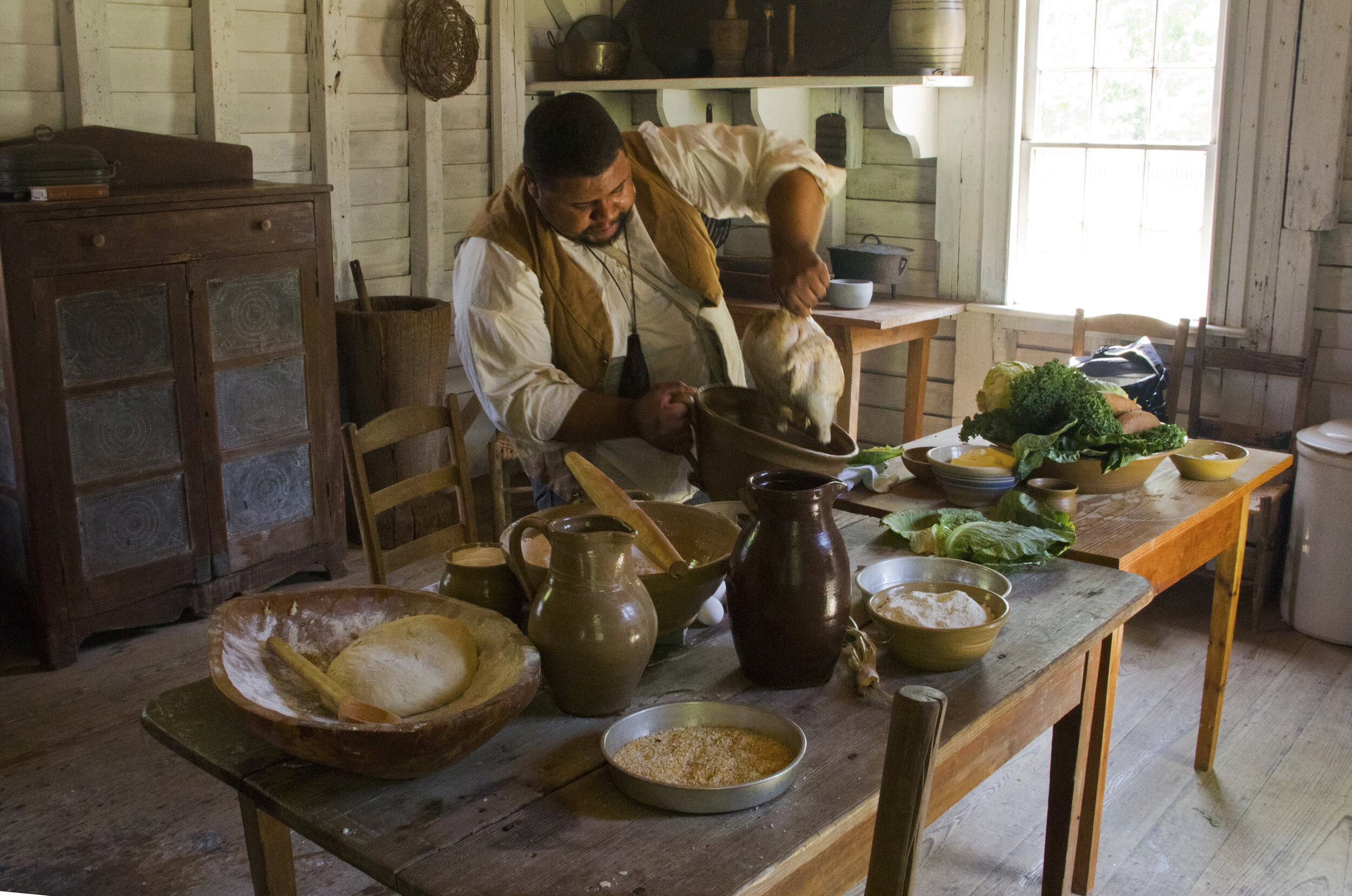Michael Twitty isn’t like other modern-day chefs; in fact, most of his work focuses on the past rather than the present. His goal isn’t to revolutionize the restaurant industry or innovate any new cooking techniques. His goal is to become the first African American antebellum chef in over 150 years. As a culinary historian of the American South, Twitty has committed his life to documenting and educating people on the history of enslaved Africans’ cooking techniques, as well as their impact on practices today. His work is divided into two categories: identity cooking, which examines how the various aspects of his personal identity have interacted with and been influenced by the different foods in his life, and culinary justice, where he teaches people across the country how to acknowledge, respect, and uphold the cultural heritage that links us to the foods that we eat. Dubbed the “Antebellum Chef,” Twitty accomplishes both objectives through historical interpretations of plantation cooking, creating accurate depictions of the cooking traditions of how the cooking traditions of slaves both impacted and were impacted by the antebellum South.