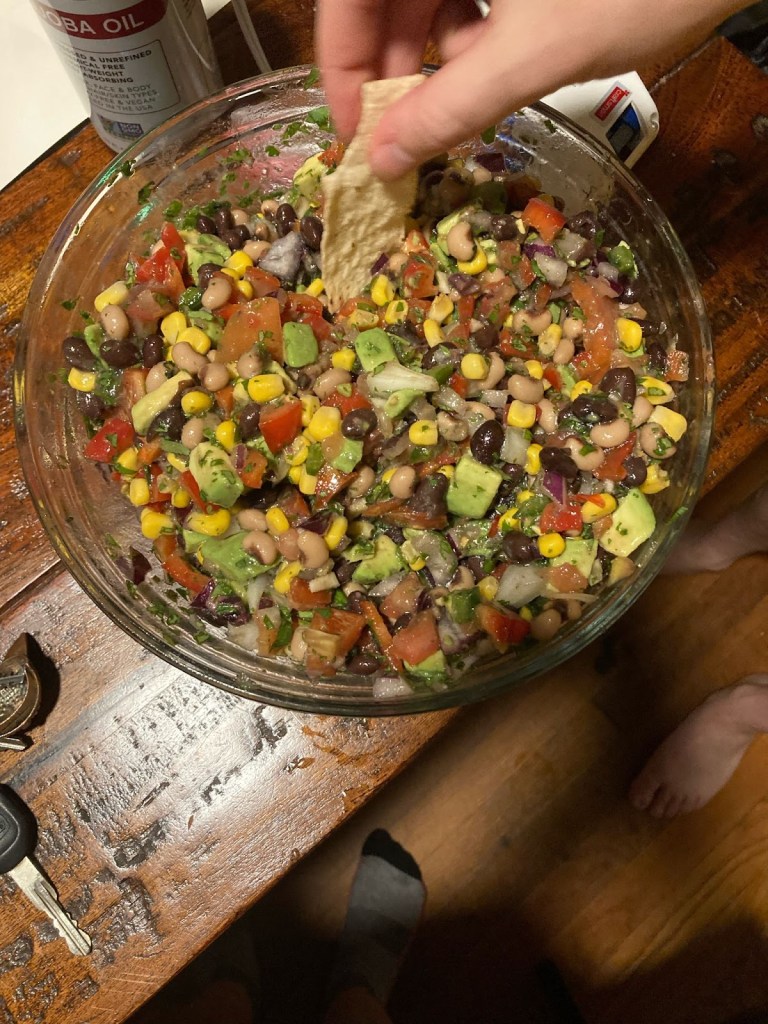 Something I considered to be a sacred family recipe was my mom’s famous “bean dip;” a combination of beans and corn with a few other flavors and a bunch of love. This recipe was perfect for a single mother with three children because it was easy to make, able to rest in the fridge for days, and consisted of five cheap ingredients. In the summer, my siblings and I would live on the big batches of bean dip my mom had pre-made and the Frito Scoops we used to transport it into our mouths. I always assumed the recipe was a product of Portland, Oregon (it consisted of simple, semi-fresh products and lacked any added spices or flavoring). Later in my life, I had observed the fact that none of the family members on my mom’s side knew how to make the dip except for her. I became more confused when I walked into a Trader Joes in New Orleans and saw a version of my mom’s dip in a jar with the label, “Cowboy Caviar,” being sold for $11.00. My mom ended up telling me that she obtained the recipe from my dad’s mom, who is deeply rooted in Texas. This “bean dip,” “Cowboy Caviar,” or “Texas Caviar,” whatever you call it, did indeed originate in Texas as a homemade dish made on New Years, although it is now a packaged dip that is sold all over the country.