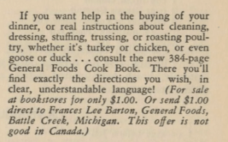 “Thanksgiving Dinner Fixings.” Image, General Foods. What’s Cookin’ @ Special Collections.
