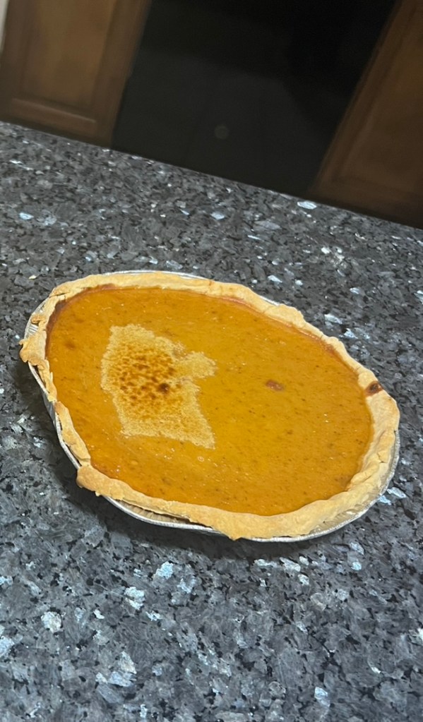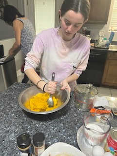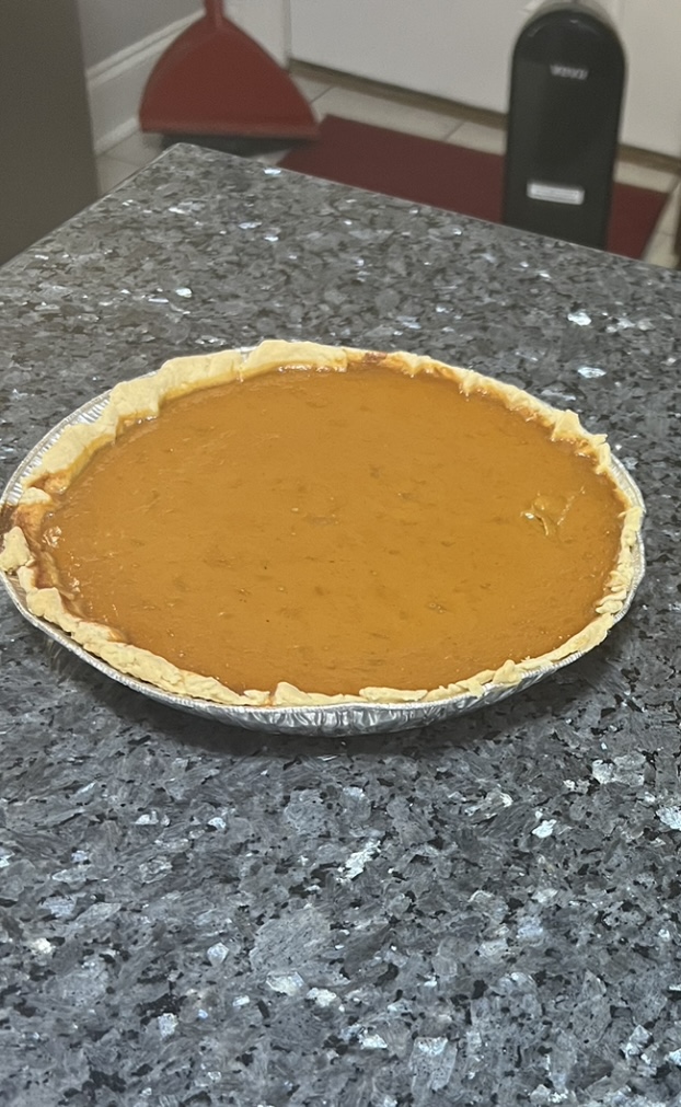 When I cut into both pies, they both had a jiggly consistency, and both crusts were flaky. The 1796 pumpkin pie had the taste of raw pumpkin, and it tasted very bitter. I could taste the pumkin and biterness in each bite. I might have estimated the molasses wrong, which could be why it tasted so bitter. The 2023 pie tasted a little burnt becuase I burnt the top, but other than that it tasted like the pumkin pie I know today. It was very sweet when you first bit into it, and I got a pumpkin aftertaste as I swallowed each bite. The pumpkin flavor was definetely stronger in the 1796 pie, however, the sweetness of the 2023 pie balanced out the pumpkin flavor much better. Both pumpkin pies were very soft and easy to chew. I think both pumpkin pies came out pretty good based on the fact that I have never baked anything from scratch before.