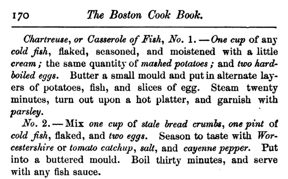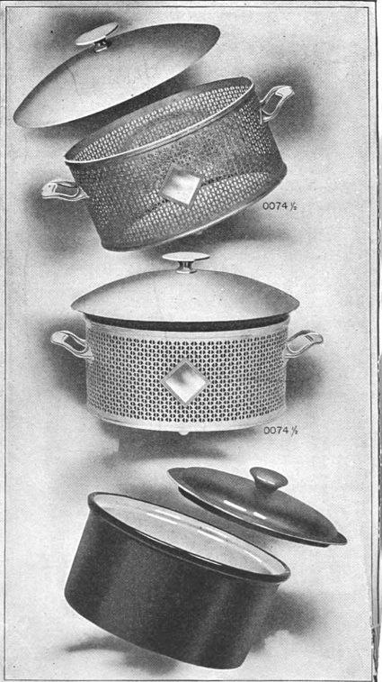 Hill, Janet McKenzie. Cooking and Serving en Casserole and Things We Relish. Meriden silver plate Company, International silver Company, successor, 1910, https://books.google.com/books?id=FCsxAQAAMAAJ.