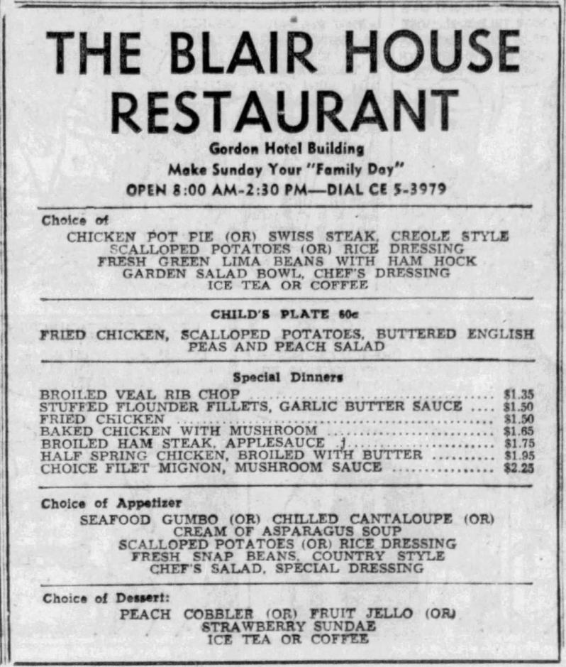 The purpose of this article is to show restaurants in Lafayette, Louisiana someone could find in 1952. Due to changes in street names, I used the Sanborn Fire Insurance Maps and Google Maps to locate the addresses shown on the map. In addition to the map, I will include some of the menus and food someone may have seen while dining in 1952 Lafayette.